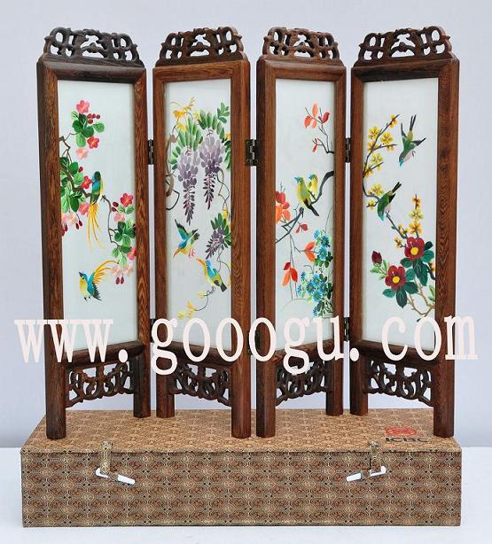 蘇繡四折屏風 雙面繡小屏風 中國工商銀行禮品 外事商務禮物