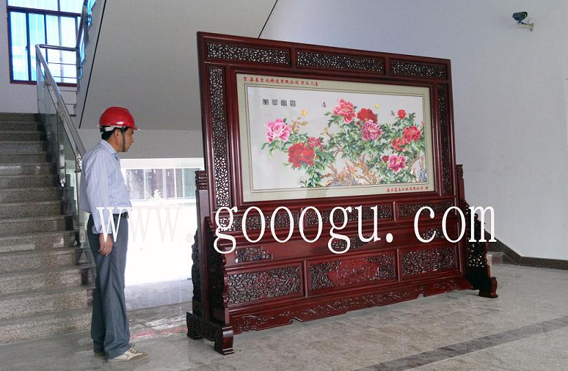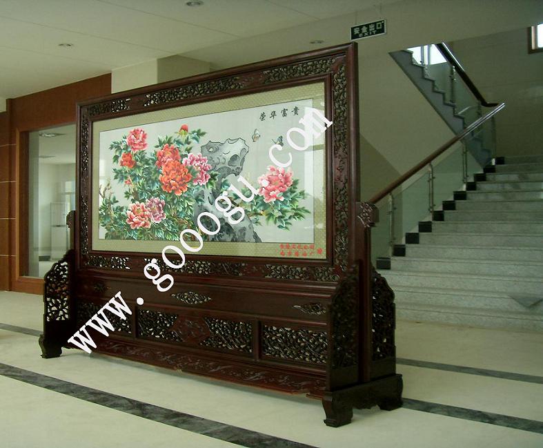 大型紅木屏風(fēng)定做&刺繡屏風(fēng)來樣定做加工*雙面繡大堂屏風(fēng)---山東某五星級酒店訂