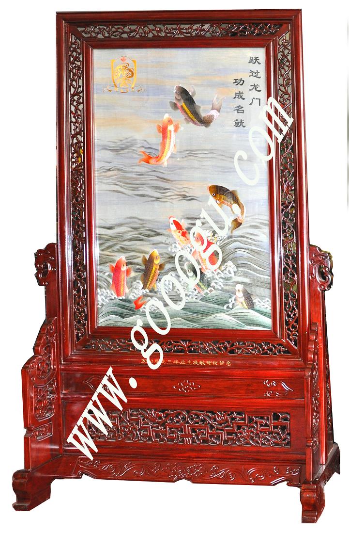 蘇繡小地屏 雙面刺繡小屏風(fēng)玄關(guān) 魚躍龍門圖 學(xué)校畢業(yè)紀(jì)念贈品
