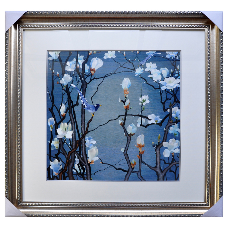 蘇繡玉蘭花鳥刺繡收藏品畫中歐式結合花鳥蘇繡滿繡畫