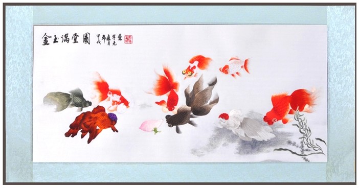 蘇繡禮品 手工刺繡 商務禮品外賓 金玉滿堂 金魚
