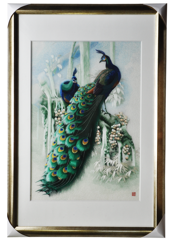 蘇繡裝飾畫工藝品辦公室壁畫手工刺繡孔雀圖
