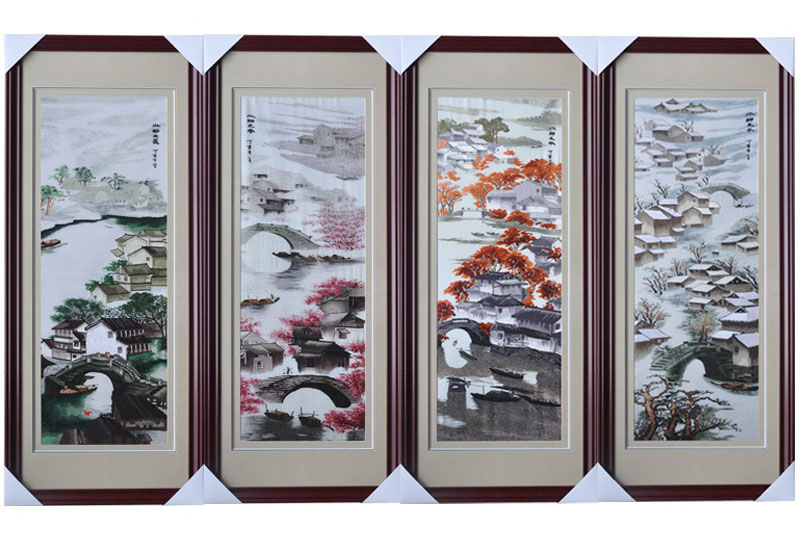 嬌古蘇繡 手工刺繡畫 中式裝修壁畫春夏秋冬 書房客廳畫