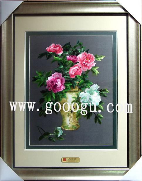 蘇繡裝飾畫|民間刺繡工藝品|靜物牡丹蘇州刺繡