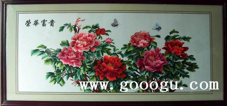 大幅牡丹刺繡畫|手工刺繡畫|大廳裝飾畫