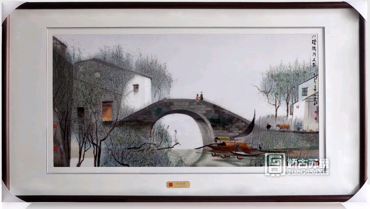 【蘇繡裝飾畫】水鄉裝飾畫、江南水鄉、小橋流水/酒店裝飾畫