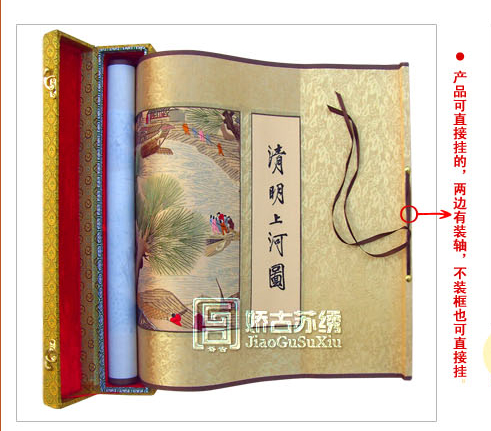 【嬌古蘇繡】蘇繡清明上河圖/蘇繡名畫、軟裱方便攜帶/純手工刺繡