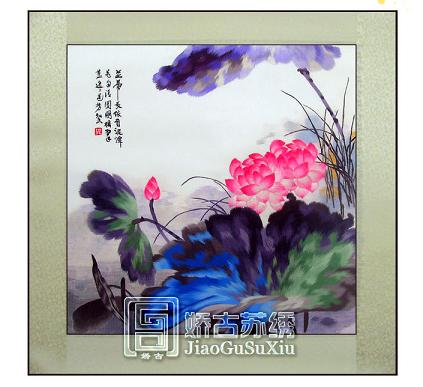 【嬌古蘇繡】荷花軟裱&居家裝飾畫&客廳掛畫&純手工刺繡畫