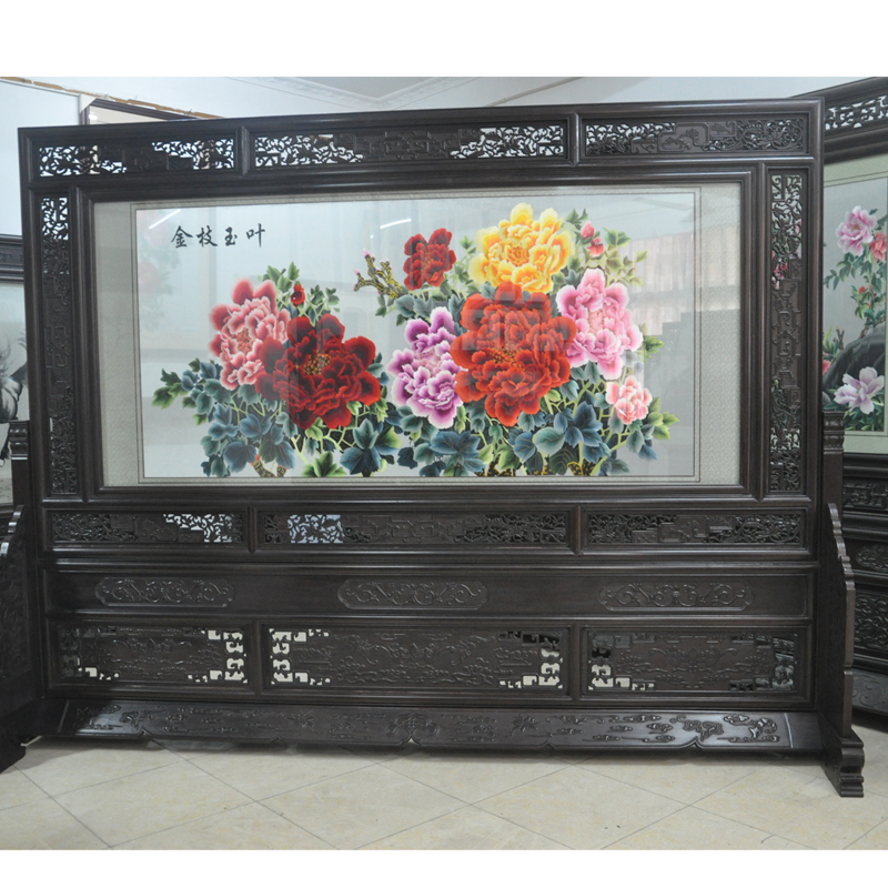 蘇繡木質屏風家用中國風刺繡牡丹圖手工酒店玄關蘇繡