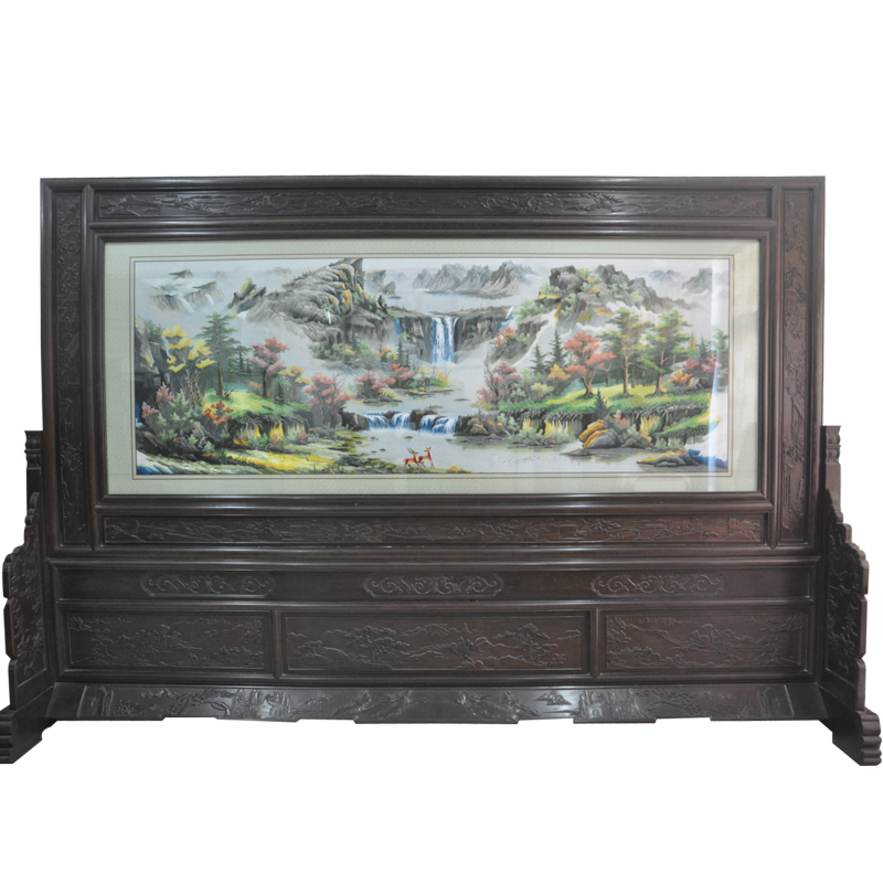 嬌古蘇繡刺繡 長白勝境風景屏風 大廳雙面繡隔斷 純手工刺繡包郵