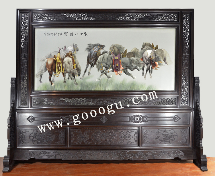 蘇繡屏風 單位大廳工藝品 手工刺繡作品 盛世八駿