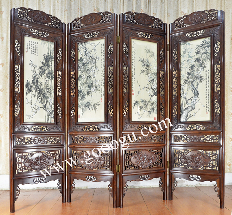 蘇繡折疊屏風 純手工刺繡 紅木框架 接待室專用 梅竹