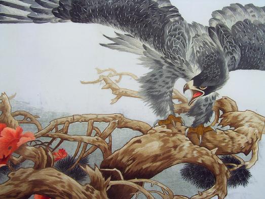 產(chǎn)品名稱:詠鷹蘇繡畫(huà) (產(chǎn)品代碼:RB-3782) 產(chǎn)品工藝:手工刺繡+手工軟裱工藝 產(chǎn)品材質(zhì):錦綾+桑蠶絲線+絲綢面料 產(chǎn)品規(guī)格:刺繡尺寸長(zhǎng)100CM,寬50CM 裝裱后整體長(zhǎng)120CM,寬65CM 產(chǎn)品包裝:錦盒 產(chǎn)品重量(含包裝):1.20KG 嬌古驚爆出廠價(jià):1800元 產(chǎn)品描述:詠鷹蘇繡軟裱作品,取材古典,手工刺繡精細(xì),整體畫(huà)面簡(jiǎn)潔純樸.用傳統(tǒng)的中國(guó)書(shū)畫(huà)工藝軟裱而成.方便攜帶,且值的收藏.是贈(zèng)送友人及海內(nèi)外客人的禮品之一.