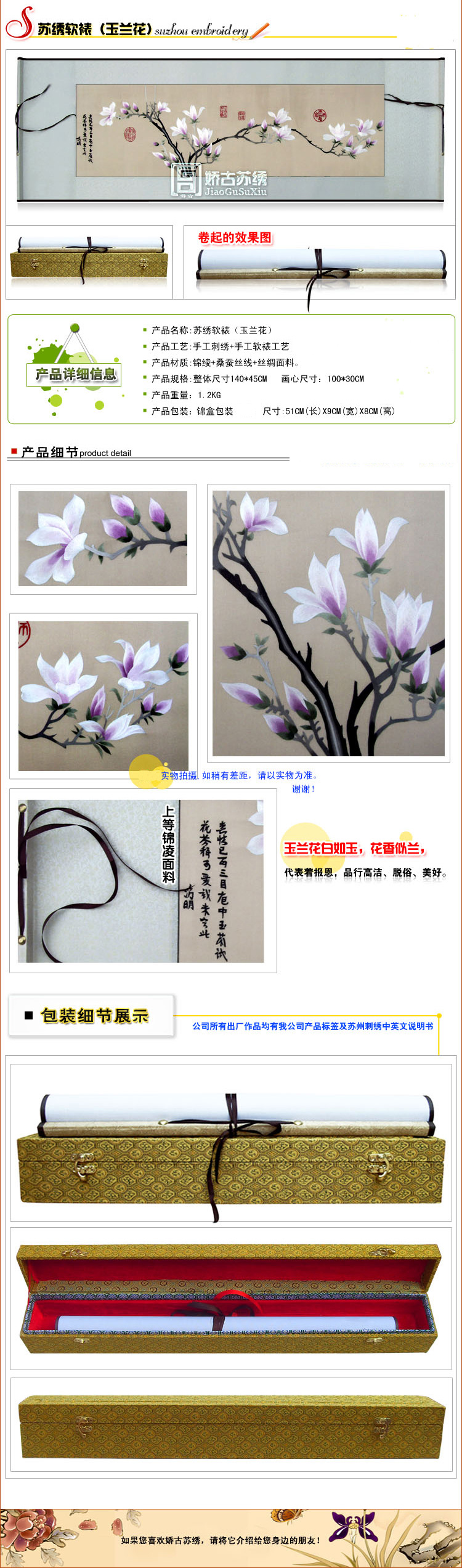 【嬌古蘇繡】蘇繡禮品、玉蘭花精品刺繡軟裱、送老外/送朋友