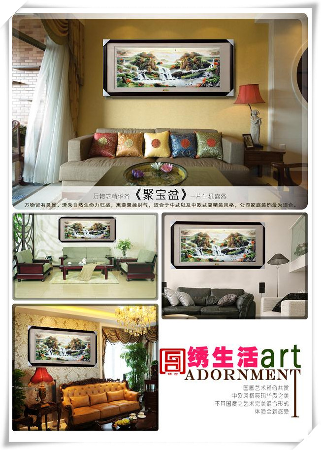 【蘇繡規(guī)格】:60*160(圖案尺寸) 90*200CM(外框尺寸) 【蘇繡工藝】:手工刺繡 【外框材質(zhì)】:實(shí)木框拉丁木 【絲線(xiàn)材質(zhì)】:蠶絲線(xiàn) 【蘇繡檔次】:6-8絲刺繡。 【嬌古蘇繡出廠(chǎng)價(jià)】:5200元(含運(yùn)費(fèi)) 【發(fā)貨方式】:由我司安排發(fā)往客人指定地點(diǎn) 【寓 意】:山水畫(huà)的代表著財(cái)源,流動(dòng)的水如瀑布更是川流不息的好兆頭。;是表示靠山的意思,山水常青、背靠大山、水(財(cái))源滾滾、平安長(zhǎng)久。聚寶盆山水除了普通山水畫(huà)的寓意,更體現(xiàn)聚字。聚的是財(cái),聚的是福,聚的是吉祥。兩邊源源不斷的流水表示有多方財(cái)源。匯聚成一湖面,整體看就是一個(gè)大元寶,寓意大富貴。松樹(shù)和仙鶴代表著財(cái)富得以長(zhǎng)長(zhǎng)久久。 【細(xì)節(jié)欣賞一】
