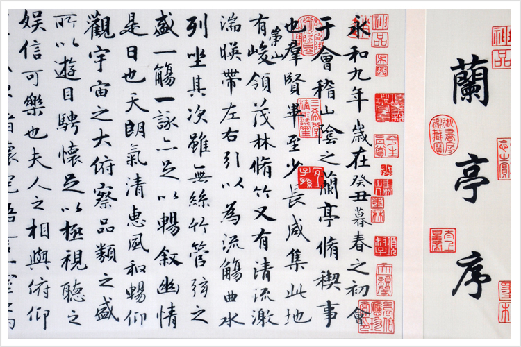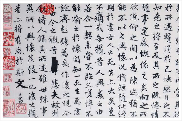 【品 牌】:嬌古 (作品代碼 D-1042) 【品 名】:蘭亭序裝飾畫(手工蘇繡) 【品 質】:2-4絲刺繡 (蘇繡小知識:1根蘇繡絲線可分為16絲,中檔刺繡皆為10絲所繡,中高檔刺繡皆為6-8絲,高檔刺繡皆為4-6絲,精品刺繡皆為1-4絲) 【尺 寸】:畫心尺寸44*117cm 整體尺寸60*147cm 【產品工藝】:手工刺繡+真絲底料 【絲線材質】:蠶絲線 【用 途】:家居裝飾及政府禮品、外賓禮品、生日禮物、賀壽禮品、領導升遷、出國禮品等等。 【出廠價格】:12000元 【作品介紹】:東晉穆帝(司馬聃)永和九年(公元353年)三月初三日,王羲之和當時名士孫綽、謝安和釋支遁等四十一人,為禊事活動,在蘭亭宴集。與會的人士都有詩作,事后把這些詩篇匯編成集,《蘭亭集序》就是王羲之為這個詩集所寫的序言。序,文體名,是對書籍和文章舉其綱要、論其大旨的一種文字,相當于引言。 《蘭亭集序》文字燦爛,字字珠璣,是一篇膾炙人口的優美散文,它打破成規,自辟徑蹊,不落窠臼,雋妙雅逸,不論繪景抒情,還是評史述志,都令人耳目一新。雖然前后心態矛盾,但總體看,還是積極向上的,特別是在當時談玄成風的東晉時代氣氛中,提出一死生為虛誕,齊彭殤為妄作,尤為可貴。《蘭亭集序[1]》的更大成就在于它的書法藝術。通篇氣息淡和空靈、瀟灑自然;用筆遒媚飄逸;手法既平和又奇崛,大小參差 ,既有精心安排藝術匠心,又沒有做作雕琢的痕跡,自然天成。其中,凡是相同的字, 寫法各不相同,各有變化,特別是字,達到了藝術上多樣與統一的效果?!短m亭集序》是王羲之書法藝術的代表作,是中國書法藝術 史上的一座高峰,它滋養了一代又一代書法家。 在結構和章法上以情感為線索,敘中有情,以情說理。第一段在清麗的境界中,著重寫樂字,由樂而轉入沉思,引出第二段的痛字,在經過一番痛苦的思考后,不覺感到無限的悲哀,最后以一悲字作結。情感色彩迥乎不同,前后過渡卻妥帖自然。 細節圖