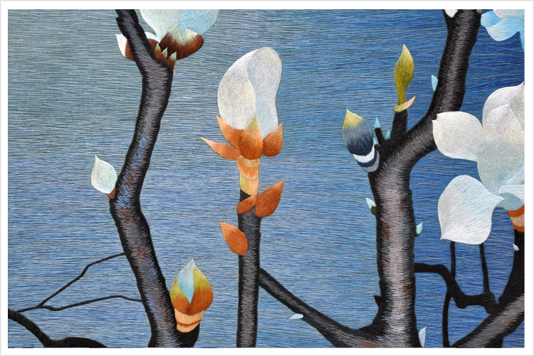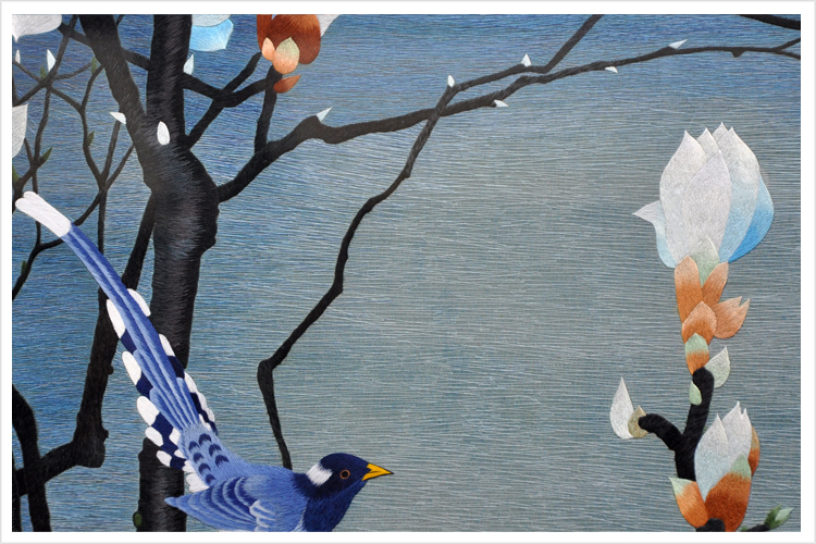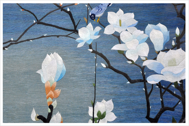 【品 牌】:嬌古 (作品代碼 D-1039) 【品 名】:玉蘭花鳥裝飾畫(手工蘇繡) 【品 質(zhì)】:1-2絲刺繡 (蘇繡小知識:1根蘇繡絲線可分為16絲,中檔刺繡皆為10絲所繡,中高檔刺繡皆為6-8絲,高檔刺繡皆為4-6絲,精品刺繡皆為1-4絲) 【尺 寸】:畫心尺寸68*68cm 整體尺寸110*110cm 【產(chǎn)品工藝】:手工刺繡+真絲底料 【絲線材質(zhì)】:蠶絲線 【用 途】:居家裝飾及政府禮品、外賓禮品、生日禮物、賀壽禮品、領導升遷、出國禮品等等。 【出廠價格】:55000元 細節(jié)圖