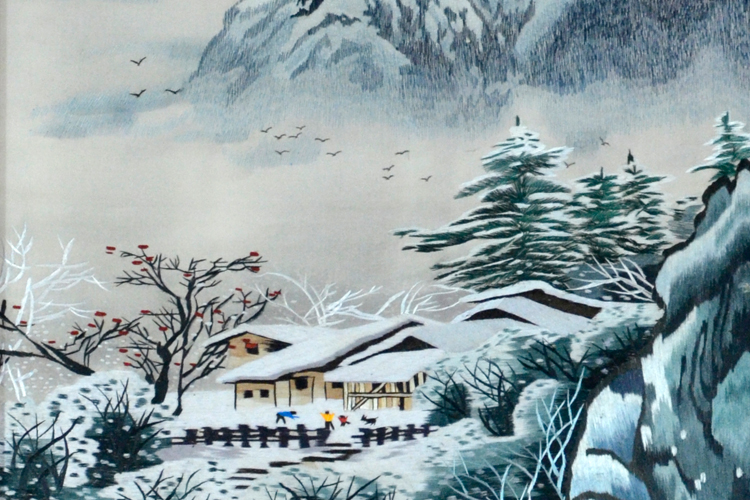 【產品名稱】:蘇繡玄關屏風---冬趣(雙面繡) (作品代碼:P-1072) 【產品規格】:圖案尺寸寬度50cm,高度120cm 外框整體尺寸寬90cm,高200cm 【產品工藝】:手工刺繡 【產品材質】:真絲面料+雞翅木框+桑蠶絲線+玻璃 【產品包裝】:木箱包裝,用海綿包扎,確保運輸安全 【出廠價】:13800元 【產品運輸】:我司負責發往客戶指定地點,蘇州附近城市可送貨上門! 【產品說明】:此款雙面繡玄關屏風,是由蘇州工藝師耗時三個月精心手工刺繡而成,刺繡圖案以山水《冬趣》為題材繡工精細,顏色搭配均勻過渡自然,山水畫展現了冬天的美景,拋開城市的喧囂將鄉村冬天的美景盡收眼底,給人輕松而又舒心的感覺。屏風的框架選用進口的雞翅木木為料!歡迎親臨嬌古蘇繡展示廳觀看實物! 【作品欣賞】 .jpg)