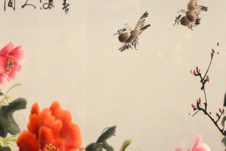 【產(chǎn)品名稱】:春滿人間屏風(fēng) (作品代碼:P-1097) 【產(chǎn)品規(guī)格】:圖案尺寸寬度160cm,高度90cm 外框整體尺寸寬220cm,高205cm 【產(chǎn)品工藝】:手工刺繡 【產(chǎn)品材質(zhì)】:真絲面料+雞翅木框+桑蠶絲線+玻璃 【產(chǎn)品包裝】:木箱包裝,用海綿包扎,確保運(yùn)輸安全 【出廠價(jià)】:28000元 【產(chǎn)品運(yùn)輸】:我司負(fù)責(zé)發(fā)往客戶指定地點(diǎn),蘇州附近城市可送貨上門! 【產(chǎn)品說明】:此款雙面繡屏風(fēng),是由蘇州工藝師耗時(shí)四個(gè)月精心手工刺繡而成,刺繡圖案以牡丹花春滿人間為題材繡工精細(xì),顏色搭配均勻過渡自然,整體給人舒適,愜意之感,屏風(fēng)的框架選用雞翅木為料,是蘇繡屏風(fēng)中的經(jīng)典作品。適合家用玄關(guān)或辦公室玄關(guān)裝飾!歡迎親臨嬌古蘇繡展示廳觀看實(shí)物! 【作品欣賞】 .jpg)