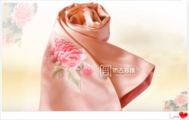純手工繡花圍巾 真絲圍巾 桑蠶絲 高檔絲綢禮品