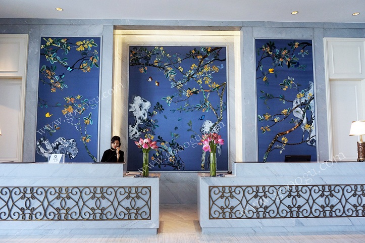 嬌古蘇繡負(fù)責(zé)承接綠城集團(tuán)杭州尊藍(lán)錢江豪華精選酒店大堂的背景工程,該項(xiàng)工程由近30位繡娘耗時(shí)數(shù)月完成,刺繡效果層次鮮明、顏色過(guò)渡均勻自然,得到綠城集團(tuán)領(lǐng)導(dǎo)的一致好評(píng)。“在最短的時(shí)間內(nèi)做出最好的效果,為我們開業(yè)贏得了寶貴的時(shí)間”,是綠城集團(tuán)領(lǐng)導(dǎo)對(duì)嬌古蘇繡的評(píng)價(jià)。
